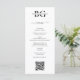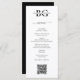 Ein minimalistisches Schwarz-Weiß Monogramm Initialen Hochzeitsdesign. Ein einfaches Design, das die Initialen und Namen der Braut und des Bräutigams verwendet, um ein elegantes klassisches Monogramm zu erstellen. Ein charmantes, minimalistisches mit Monogramm Design mit klassischer Schriftzeichen. Ein elegantes Schwarz-Weiß-Monogramm initialisiert thematisch Hochzeitsmenü-Kartendesign mit modernen Elementen und QR-Code. Auch die passenden Hochzeitseinladungen und andere Schreibwaren sind verfügbar.