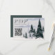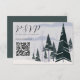 Eine schöne Winterlandschaft mit einem schneebedeckten Wald aus dunkelgrünen Fichten und Tannen und einem hellgrauen Himmel schmückt diese Hochzeitskarte. Dieses moderne zeichn einer verschneiten Naturlandschaft eignet sich ideal für einen Abend im Dezember oder Januar, der mit Ihrem Weblink QR Code Response-Karte für Hochzeiten ausgibt.