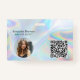 "Niedliches und funkelnd Imitat holografisches Hintergrund Abzeichen für kleine Unternehmen und große Unternehmen. Das Design verfügt über ein modernes Skript, Typografie, trendige Schriftart und einen einfachen, aber dennoch wirkungsvollen Hintergrund. Ideal für Kosmetiker oder Schönheitssalonbesitzer, Makeup-Künstler, Kostümmacher, Friseur oder Kosmetologe." Fügen Sie einfach Ihre Business-Website hinzu und wir erstellen Ihnen einen einzigartigen QR-Code, den Sie Ihrem Abzeichen hinzufügen. Die Leute können den QR-Code scannen, um die URL zu besuchen. Klicken Sie auf die Schaltfläche "Personalisieren", um Ihre Rücksendeadresse auf der Rückseite hinzuzufügen, damit das Abzeichen sicher zurückgegeben werden kann, wenn es falsch platziert ist. HINWEIS: Die holografischen Details werden im Kunstwerk simuliert. Beim Drucken wird es keine wirklichen holografischen Glanzeffekte geben.
