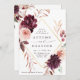 Diese Einladung beinhaltet einen Aquarellkranz aus Dahlien, Rose und Pony in bordeauxroten, maronen und rot rosa Blume über Herbstlauben mit einem Imitat goldenen Rahmen und Hochzeitsdetails, QR Code Website Link auf der Rückseite. Klicken Sie auf die SCHALTFLÄCHE BLAUE DESIGN TOOL, um eine erweiterte Anpassung dieses Designs zu erhalten. Matching-Elemente sind ebenfalls verfügbar.