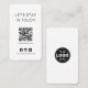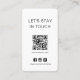 Eine einfache Bleibe in Touch-Karte mit einem Logo, Social Media Icons Instagram, Facebook und Twitter und Unternehmen Website QR Code in einem modernen minimalistischen Stil. Diese Vorlage kann leicht mit Ihren Firmeninformationen personalisiert werden. Benötigen Sie verschiedene Social Media Icons? Kontaktiere mich!