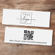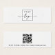 Weiße oder beliebig farbige Mini-Produktsichtkarte mit zentrierter Logo-Vorlage und QR-Code auf der Rückseite. Die Ohrring-Hilfslinien können durch Hinzufügen und Entfernen von Leerzeichen im Vorlagenfeld und durch Verschieben des gesamten Elements im Entwurfstool eingestellt werden.