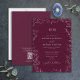 QR Code Leaf Burgundy Elegant Monogram Wedding Einladung