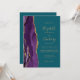 Der links Rand verfügt über einen lila Aquarellstreifen mit goldenen Imitaten Glitzer. Der anpassbare Text kombiniert goldfarbene Handschrift, Copperplate und kursiv Schriftart auf einem aquamarinen blauen Hintergrund. Die Rückseite bietet Platz für Hochzeitsdetails auf einem soliden aquamarinen Hintergrund, zusammen mit einem QR-Code, den die Gäste scannen können, um Ihre Website und UAWG zu besuchen, was die Kosten für den Druck und Versand separater RSVP-Karten rette.