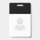 Berufliche ID-Abzeichen mit schwarz-weißem Hintergrund, Foto des Mitarbeiters, Name, Beruf, QR-Code, Firmenlogo und Firmendetails.