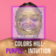 QR Code Logo Shop Lila Gold Tropfen Confetti Quadratische Visitenkarte