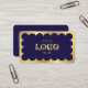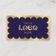 Elegante und schicke Visitenkarten in Marineblau und Gold mit einer stilvollen Keilkante, Retro-Schriftart und einem QR-Code scannbar. Erstellen Sie moderne Visitenkarten für Ihren Schönheitssalon oder Ihren Wellness-Center, Boutique oder jedes andere Geschäft mit diesem Imitat Gold-Folie Effekt-Karte Design. Fügen Sie Ihren QR-Code, Ihr Logo, Ihre Kontaktdaten hinzu, um berufliche Visitenkarten zu erstellen.