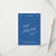 A blue wedding RSVP card with a bold handwritten script front and a clean white back featuring a QR code for easy online responses. Fully customizable with your names, date, QR code, location and reply deadline. Part of the coordinated wedding collection "Florence" — explore matching stationery pieces to complete your suite. Mockups for this design were created using Midjourney AI.