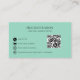 Diese einzigartige Visitenkarte ist ideal für den Besitzer, der einen lustigen Pop in lila und minter Farbe will. Es verfügt über ein modernes abstraktes Ambiente und verfügt über einen QR-Code auf der Rückseite, den Sie mit Ihrer speziellen Website personalisieren können, um Ihren Kunden zu helfen, Termine mit Ihnen effektiv zu buchen und alle Informationen zu finden, die für Ihr Unternehmen erforderlich sind. Viel Spaß damit und Set dein Selbst auseinander!