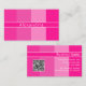Es handelt sich um ein modernes, stilvolles, personalisiertes Business-Design. Dieses schicke, einfache Design ist in trendigem heißen Rosa, Rosa und Weiß gehalten. Es hat Platz für Sie, um Ihren Namen (oder Geschäftsnamen) auf der Vorderseite hinzuzufügen. Auf der Rückseite können Sie Ihren Firmennamen und Geschäftsinformationen sowie QR-Code hinzufügen. Das Template Design ist für Sie ein Set, um einfach Ihre Geschäftsinformationen und Kontaktdaten hinzuzufügen und ist ideal für eine berufliche, minimale und elegante Visitenkarte, die Ihren Kunden und Geschäftskontakten zu geben. Fügen Sie einfach Ihren Namen / Firmennamen und Geschäftsinformationen zu Ihrer Personalisierung hinzu, indem Sie dieses Textfeld personalisieren. Um Ihren individuellen QR-Code für Ihr Unternehmen zu erstellen, fügen Sie einfach Ihre URL mit der Personalisierung dieses Textfelds hinzu, und Ihr scannbarer QR-Code wird automatisch auf der Rückseite der Visitenkarte erstellt. Um die Farbe oder den Schriftart zu ändern, Karo aus dem Entwurfsbearbeitungsprogramm. Für Hilfe bei Personalisierung, passenden Produkten oder für ein individuelles Design kontaktieren Sie mich per zazzle Chat oder E-Mail: ursuladawnmoon@gmail.com