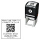 Moderne und einfache Briefmarke für Ihr Unternehmen oder Ihre Organisation. Fügen Sie Ihren QR-Code und zwei Zeilen benutzerdefiniertem Text hinzu, wie z. B. "scannen, um sich mit uns zu verbinden" und Ihren Firmennamen, Ihre Adresse und Ihre Telefonnummer.