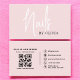 Diese stilvolle QR Code Visitenkarte für Nagelspezialisten verbindet moderne Typografie mit einem personalisierten Design für maximale Wirkung. Mit einem komfortablen QR-Code können Kunden sofort auf Ihr Portfolio, Ihre Website oder Ihre Buchungsseite zugreifen, was die Verlobung und Zugänglichkeit Ihrer Kunden erhöht. Mit seinem schlanken Layout und den anpassbaren Elementen fügt diese Karte der Marke eines Nagelkünstlers eine berufliche Touch hinzu und bewahrt gleichzeitig einen zeitgemäßen, minimalistischen Look. Ideal für Fachleute der Schönheitsindustrie, ist es eine schicke, funktionale Art, Ihre einzigartige Nagelkunst zu präsentieren und mit potenziellen Kunden in Verbindung zu treten.
