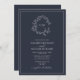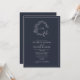 QR Code Navy Blue Leafy Wappen Monogram Wedding Einladung