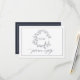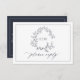 QR Code Navy Blue Leafy Wappen Monogram Wedding RSVP Karte