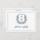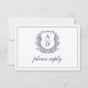 QR Code Navy Blue Wappen Monogram Wedding RSVP Karte