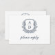 QR Code Navy Blue Wappen Monogram Wedding RSVP Karte