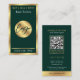 Elegante Visitenkarten in smaragdgrün und goldgelb mit Platz für Ihren scannbaren QR-Code und Logo, ideal für echte Anwesen-Agent, Notare, Anwälte oder andere berufliche Dienstleistungen. Dieses luxuriöse Design der Visitenkarten bietet Imitate mit goldenem Rahmen, grünem Hintergrund, Platz für einen QR-Code in einem Goldrahmen mit Ihren Kontaktdaten darunter. Sie können sogar den Hintergrund zu jeder Farbe bearbeiten, um Ihre Marke Anzug!