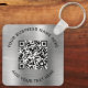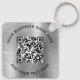 Einfach eleganter Schlüsselanhänger für Ihr Unternehmen oder Ihre Organisation mit einem silbernen Imitat aus metallischem Hintergrund. Fügen Sie Ihren QR-Code oder Ihr Logo und zwei Zeilen mit individuellem Text hinzu, z. B. Ihren Firmennamen, Slogan, vielen Dank oder verlass leer.
