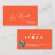 Elegante, trendige, handgeschriebene Kalligrafie-Schriftart, feminines Signatur-Skript, leuchtend orange und weißes Influencer-Geschäftskarten-Template mit scannbarem QR-Code für Website, Katalog oder Portfolio. Geeignet für Schönheitsprofis: Visagisten, Friseure, Nageldesigner, Wimpern- und Augenbrauen-Spezialisten, Social-Media-Influencer, persönliche Stylisten, Lipsense-Vertriebspartner oder Lifestyle-Blogger.