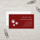 QR-Code Pet Sitter rote Visitenkarte, mit einem Pfotendruck-Design und weiß-schwarz Typografie. Mit anpassbarem Text können Sie Ihre eigenen Informationen hinzufügen. Die Rückseite hat einen QR-Code, in dem Sie Ihre Website hinzufügen. Ideal, um eine berufliche Touch für Ihr Heimtierdienstgeschäft hinzuzufügen.