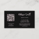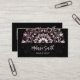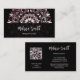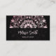 Der obere Teil der Vorderseite ist mit einem rosa glänzenden Metallgehäuse versehen, das mit einer blumengeschmückten Mandala auf schwarzem Hintergrund besticht. Im unteren Teil befindet sich ein schwarzes Textfeld mit einem eleganten Skript. Auf der Rückseite ist ein scannbarer qr-Code für Ihre Website. Ideal für Salon, Haar und Make-up, Beauty, Yogalehrerin, Boutique oder jede Unternehmerin.