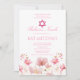 Elegant pink floral Bat Mitzvah invitation featuring a Star of David and watercolor flowers. Perfect for celebrating a girl's special day in style with a modern and feminine design.