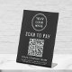 Modernes, schwarzes Top-Podestal für Ihr Unternehmen mit QR-Code für Kunden, die nach Zahlungen suchen, sodass Sie jederzeit und überall Zahlungen erhalten können. Laden Sie Ihr Logo hoch und fügen Sie Ihren Firmennamen, Ihre Telefonnummer und Straßenadresse oder andere Informationen in einer einfachen weißen Typografie hinzu. Geben Sie Ihre Zahlungsadresse ein, um automatisch einen scannbaren QR-Code zu erstellen.