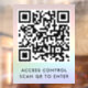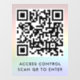 QR-Code-Scan mit benutzerdefinierter Türsperre, um die Fensterklammer einzugeben. Erstellen Sie eine schlanke, minimalistisch gehaltene Vorlage für ein benutzerdefiniertes Zeichen für die Türschließung der Kontrolle mit QR-Code. Dieses Design ermöglicht eine einfache Anpassung mit Ihrem Firmenlogo, QR-Code und personalisiertem Text, wie z. B. "Scan to get entry".