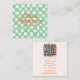 QR Code Retro Green Hand Drawn Checkered Groovy Quadratische Visitenkarte