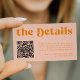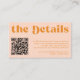 Retro groovy vintage 70s style boho unique budget affordable wedding scanning QR code wedding website enclosure card with "the details" bold typography in a vibrant trendy modern light pink and orange chic color palette. +++++++ Please note that all the colors are changeable. +++++++++ Bigger sizes available. ++++++++++++ Matching invitation and stationery are available in the collection.