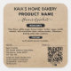 Rustic Cookies Hütte Law Label in einem modernen Schwarz-Weiß-Design mit elegantem Kalligraphie-Schriftart, Platz für Ihren Firmennamen, Adresse, Produkt Geschmack, Zutaten und Allergene Qr-Code und sozialhandle. Bitte vergewissern Sie sich, dass Sie alle Texte so bearbeiten, dass sie Ihren Bedürfnissen entsprechen und den örtlichen Lebensmittelvorschriften entsprechen. Jeder Staat und jedes Land hat seine eigenen Regeln, der Platzhalter-Text ist nur ein Leitfaden. Verwenden Sie diese Bäckereiaufkleber, um Markenbezeichnungen für Lebensmittelzutaten für Ihre selbst gebackenen Kekse zu erstellen.
