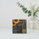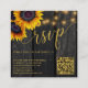 Rustikale elegante Sonnenblumen Hochzeit Einladung MINI SIZE Online-Antwort Quadrat Gehäuse Karte mit Scannen QR-Code (automatisch generiert) auf einem dunkelbraunen Stallholz Hintergrund mit Saiten von Tinkle-Lichtern. +++++++++ Matching-Stationery in der Sammlung verfügbar.