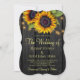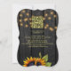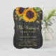 Rustikale Hochzeitsfeier und Empfang stilvoll in einem Einladungsbogen mit qr-Code auf der Website auf dunkelbraunem Stallholzhintergrund mit großen goldgelben Sonnenblumenbouquets, Streicher aus Tinkeln und einem Imitat goldenen Typografie-Skript. +++++++++++++++ Einfach mit Ihren Daten personalisieren und automatisch QR CODE für Details und uAwg online generieren! +++++++++++++++ Die Einladung ist für Hochzeiten im rustikalen Landhaus im Garten im Freien geeignet.