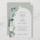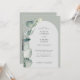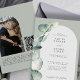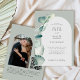 Elegante trendige Weise grün Budget erschwinglich alles in einer Verlobung FOTO Hochzeitseinladung mit bohemianischen botanischen Bogen, einfachen Typografie-Skript und Ihrem (automatisch generierten) QR CODE auf Website, Online-UAWG, Unterkunft, Anleitungen und Details.