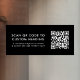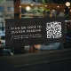 Eine einfache, benutzerdefinierte schwarze QR-Code Vinyl-Fenster Klammern Dekorzeichenvorlage in einem modernen minimalistischen Stil, der leicht aktualisiert werden kann mit Ihrem QR-Code und benutzerdefinierten Text wie Scan Me to Sign Up, Scan QR to View Products. Die perfekte Art, Ihre Veranstaltung oder Ihr kleines Unternehmen zu bewerben und zu bewerben!