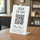 Einfaches modernes Tischschild für Ihr Unternehmen mit QR-Code für Kunden, die nach Zahlungen suchen. Fügen Sie Ihren QR-Code, Firmennamen, Telefonnummer und Straßenadresse in einfacher Typografie hinzu.