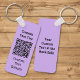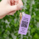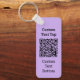 Benutzerdefinierter QR-Schlüsselanhänger. Benutzerdefinierte Hintergrundfarbe (mit einer hellen Farbe). Benutzerdefinierter Text auf beiden Seiten.