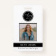 Eine minimalistische und elegante Schwarzweiß-Foto Mitarbeiter ID, die Sie personalisieren können. Ersetzen Sie das Foto-, Geschäfts- oder Firmenlogo und bearbeiten Sie den Text- und QR-Code auf der Rückseite. Ideal für Büro-, Geschäfts- oder Schularbeiten.