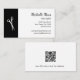 Schwarz-Weiß QR-Code-Visitenkarte mit Schwarz-weißem Hintergrund und einem scheren Design. Mit einer schwarzen, anpassbaren Schrift können Sie Ihre eigenen Informationen hinzufügen. Eine moderne Art, Ihren Friseur- oder Schönheitssalon zu fördern.
