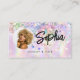 Elegantes Pastellrosa mit Holographic Rose Gold Funkelnd Glitzer Makeup Artist und Nail Artist Business Card. Sie können Ihr eigenes Bild hinzufügen und Ihren QR-Code anpassen, ideal für Beauty Salon Makeup & Hair und mehr...