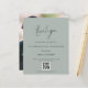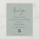 QR Code Script Hochzeit Foto Gallery Silvery Sage Danke. Ein Preis SMALLER 4,5" x 5,6" Alternative. Erhältlich in einem SEMI-GLOSS 110 lb CARD STOCK, der die Standardoption (dicker für Einladungen) ist, ODER einem SATIN FINISH 80 lb THINNER PAPER STOCK (ideal für Gehäuse). Ein minimalistisches Typografie-Design mit einem Set-Stilskript für Dankeschön. Auf der Rückseite ersetzen Sie das Beispielbild mit Ihrem eigenen Favoriten aus Ihrem Tag, um Ihre Gäste zu schützen. Personalisieren Sie die Erholung des Textes einfach mit Ihrer Nachricht und Ihren Namen und ersetzen Sie das QR-Codebeispiel durch Ihre eigene, die zu Ihrer Online-Hochzeit-Foto-Galerie führt.