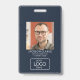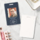 Stilvolles ID-Abzeichen-Design mit einem herausragenden Foto und einem personalisierten Logo. QR-Code auf der Rückseite für schnelle intelligente Kontaktfreigabe. Perfekt für Firmenidentifikation und Sicherheit. Auch gut für berufliche Event-Abzeichen.