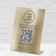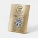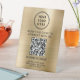 Modernes und einfaches Werbetabletop-Schild für Ihr Unternehmen oder Ihre Organisation mit gebürstetem goldfarbenem Imitat auf metallischem Hintergrund. Fügen Sie Ihr Firmenlogo, QR-Code und zwei Zeilen benutzerdefinierten Text, wie "scannen, um sich mit uns zu verbinden" und Ihren Firmennamen, Ihre Adresse und Telefonnummer hinzu.