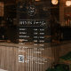 Minimalistische, weiße Geschäftsöffnungszeiten Fensterheber mit eigenem Logo und skalierbarem QR-Code. Diese berufliche, weiße Textüberschrift und das durchsichtige Hintergrundfenster sind eine gute Möglichkeit, die Öffnungszeiten Ihres Unternehmens auf Ihrem Schaufenster anzuzeigen - sie können für Ihr Geschäft, Salon oder Wellness-Center, Café, Restaurant oder andere Geschäfte verwendet werden.