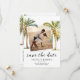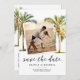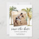 Sommerziel speichern Sie die Datumskarten! Mit weißem Hintergrund, 2 Fotos Braut/Bräutigam, tropischen Aquarellpalmen, QR-Code (ersetzen Sie das durch Ihren eigenen) und einer leicht anpassbaren, eleganten Vorlage. Stellen Sie sich das vor - Sand zwischen Ihren Zehen, ein bezaubernder Sonnenuntergang über dem tiefblauen Meer und eine Gruppe Ihrer nächsten Familie und Freunde, um Ihren Hochzeitstag zu feiern. Mit diesem exotischen Strand sparen Sie die Dattelkarten, können Sie die Freude und Spannung Ihres besonderen Tages erfassen und Ihren Gästen das Gefühl geben, an die Küste des Paradieses transportiert zu werden!
