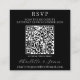 RSVP-Karten mit einem Qr-Code auf der Vorderseite und einem klassischen Schwarz-Weiß-Foto des glücklichen Paares auf der Rückseite. Um Text, Foto und qr zu bearbeiten, klicken Sie auf die Schaltfläche Personalisieren.