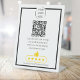 Ermuntern Sie zufriedene Kunden, mit diesem minimalistisch schwarz-weiß Rezensionszeichen ein Feedback verlassen. Dieses elegante Display wurde für moderne Markendarstellung und Werbeaktion für kleine Unternehmen konzipiert und bietet Platz für Ihr Logo, QR-Code und einen direkten Aufruf zum Handeln, um einen 5-Sterne-Test auf Plattformen wie Yelp oder Google verlassen. Ideal für Salons, Haustierpflege, Boutiquen, Cafés oder Studios, die durch positive Kundenmeinungen die Sichtbarkeit erhöhen möchten. Ein stilvolles und effektives Marketing-Tool, das es den Besuchern leicht macht, Ihren Shop mit einem schnellen Scan zu bewerten.