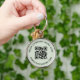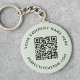 Hellgrün, runde Schlüsselanhänger mit QR-Code und benutzerdefiniertem Text. Ändern Sie Schriftart und Farben, verschieben und verändern Sie Elemente mit dem Entwurfstool. NACHRICHT! SIE MÜSSEN DIE QR-CODEVORLAGE DURCH IHREN EIGENEN QR-CODE ERSETZEN!