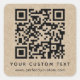 Quadratische Aufkleber mit QR-Code und benutzerdefinierter Text auf einem gedruckten Papier der Kraft-Papier sehen Hintergrund aus. Ändern Sie die Schriftart- und Schriftart-Farben, verschieben und verändern Sie Elemente mit dem Entwurfstool. Folgen Sie uns auf Facebook: @business stationery oder Instagram: @business.perfect custom for more products, news, sales and more.