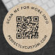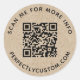 Runde Aufkleber mit QR-Code und individueller Text auf einem gedruckten Papier von Kraft im Hintergrund. Ändern Sie die Schriftart- und Schriftart-Farben, verschieben und verändern Sie Elemente mit dem Entwurfstool. Folgen Sie uns auf Facebook: @business stationery und Instagram: @business.perfect custom for more products, news, sales and more.